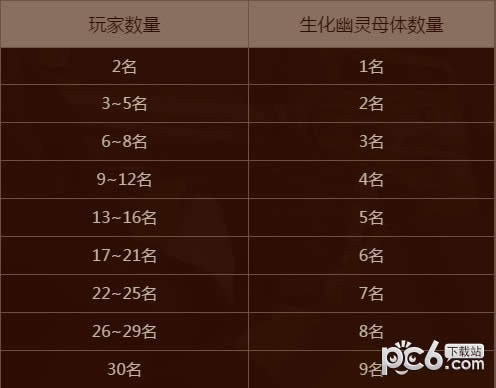 母体数量,以下为游戏内根据玩家数量不同,生成不同母体的表格。