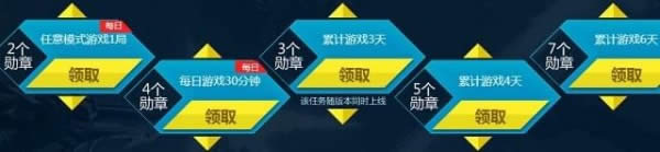 玩家每日完成任务,即可根据当日的完成任务情况领取对应数量的游戏勋章,所有道具限兑换1次!