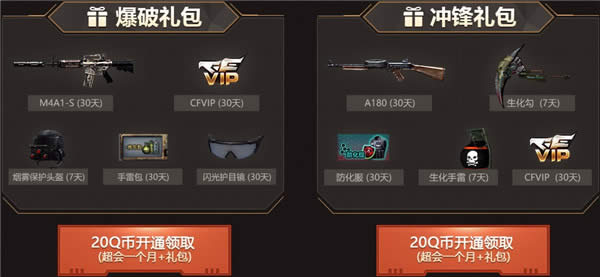 活动期间:用户可花费20Q币开通超会服务并领取爆破礼包或生化礼包,打开礼包可以获得游戏道具,单Q每日可购买一次;
