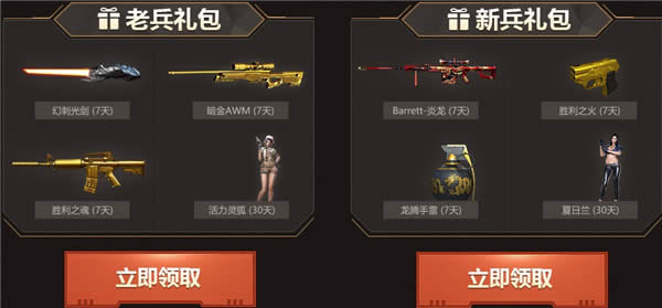 活动期间:2017年4月1日后首次创建CF角色用户即可领取一份新兵大礼包,2016年12月15日未登录CF玩家即可领取老兵礼包一份,每份礼包单Q限制一次。