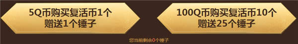 ★5Q币购买复活币1个可获得1个锤子,100Q币购买复活币10个可获得25个锤子;