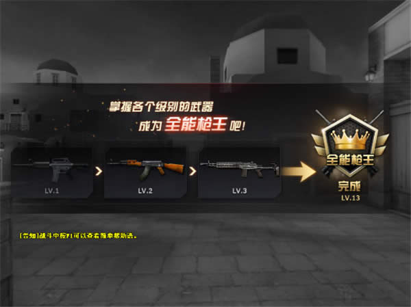全能枪王模式是一个全新的公平竞技模式。在这里,你需要精通各类枪械,所有玩家的武器列表都是一样的,绝对公平的竞技玩法。AK47、M4A1、巴雷特、贝雷塔,甚至是手雷、匕首等等,你需要用所有这些武器完成击杀才能成为真正的全能枪王!使出你的十八般武艺,你就是最终的全能枪王!