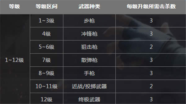 游戏过程中,不同等级将会使用不同的武器,每个人的武器列表也完全一样,绝对公平竞技。此外,该模式下死亡武器不会掉落,只有通过超群的技术击杀敌人,才能升级到下一阶段的武器。