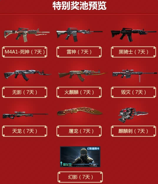 (单Q限1次)活动奖品由特别奖池和普通奖池的奖品组合而成