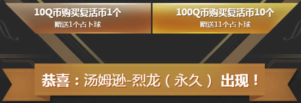 2、10Q币购买复活币1个可获得1个占卜球,100Q币购买复活币10个可获得11个占卜球;