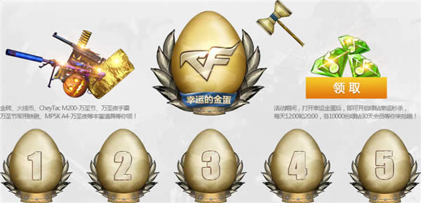 每日加入游戏一句,即可任意砸开1个金蛋,每个金蛋都会爆出不同品类的宝贝。累积砸开4个金蛋后,即可打开幸运的金蛋,获得超级宝贝