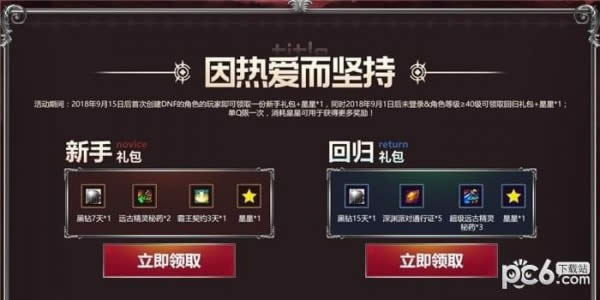 活动期间,2018年6月17日以后未登录40级以上的玩家可以在本活动页领取回归礼包一份,单Q限领1次