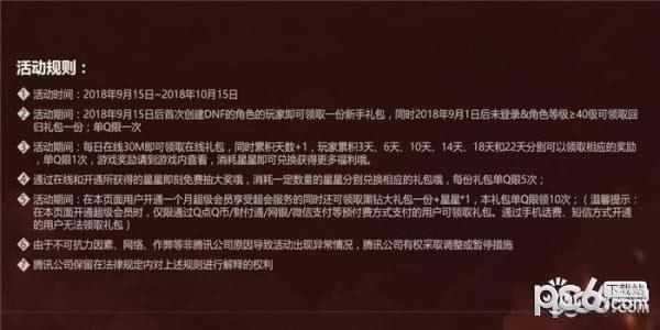 为各位玩家朋友们带来dnf9月在线的福利活动地址2018,参与到这次dnf在线的福利9月活动地址2018的玩家朋友们将可以获得各种福利道具和黑钻奖励,下面我们就来看一看dnf9月在线的福利活动地址2018吧。