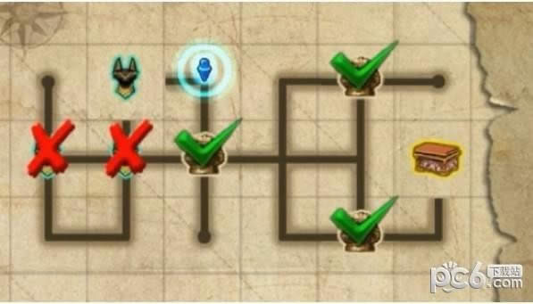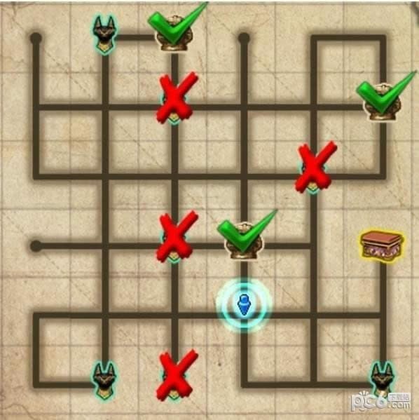 地图上狗头表示陷阱,陷阱内容下个环节讲解。奖励:通过陷阱后将随机从 显示地图构造(不包括神像及陷阱位置)、显示2个陷阱位置、显示2个神像位置 这三个线索奖励中任选一个,如果都显示完了,就没有线索奖励通关后该区域会打上一把红叉