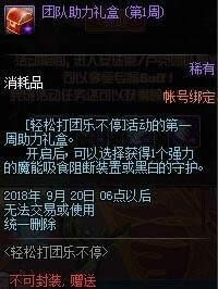 活动期间,各帐号每周可以领取1次【团队助力礼盒】。活动期间,勇士们进入安徒恩/卢克团队模式时可以获得专属buff:力量、智力、体力、精神+150;攻击、移动、施放速度+10%