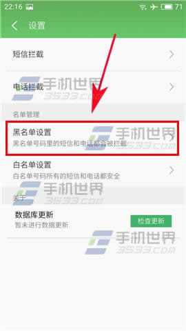 2)点击右上角的齿轮状按钮,接着选择【黑名单设置】选项。(如下图)