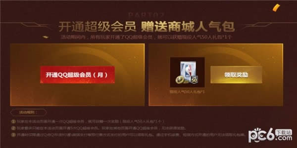 1.玩家在本活动页面开通一次QQ超级会员,就可获赠一次奖励(现役人气50人礼包*1个)