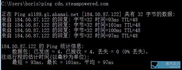 打开命令提示符,输入「ping cdn.steampowered.com」,看一下CDN給你分的节点在哪。