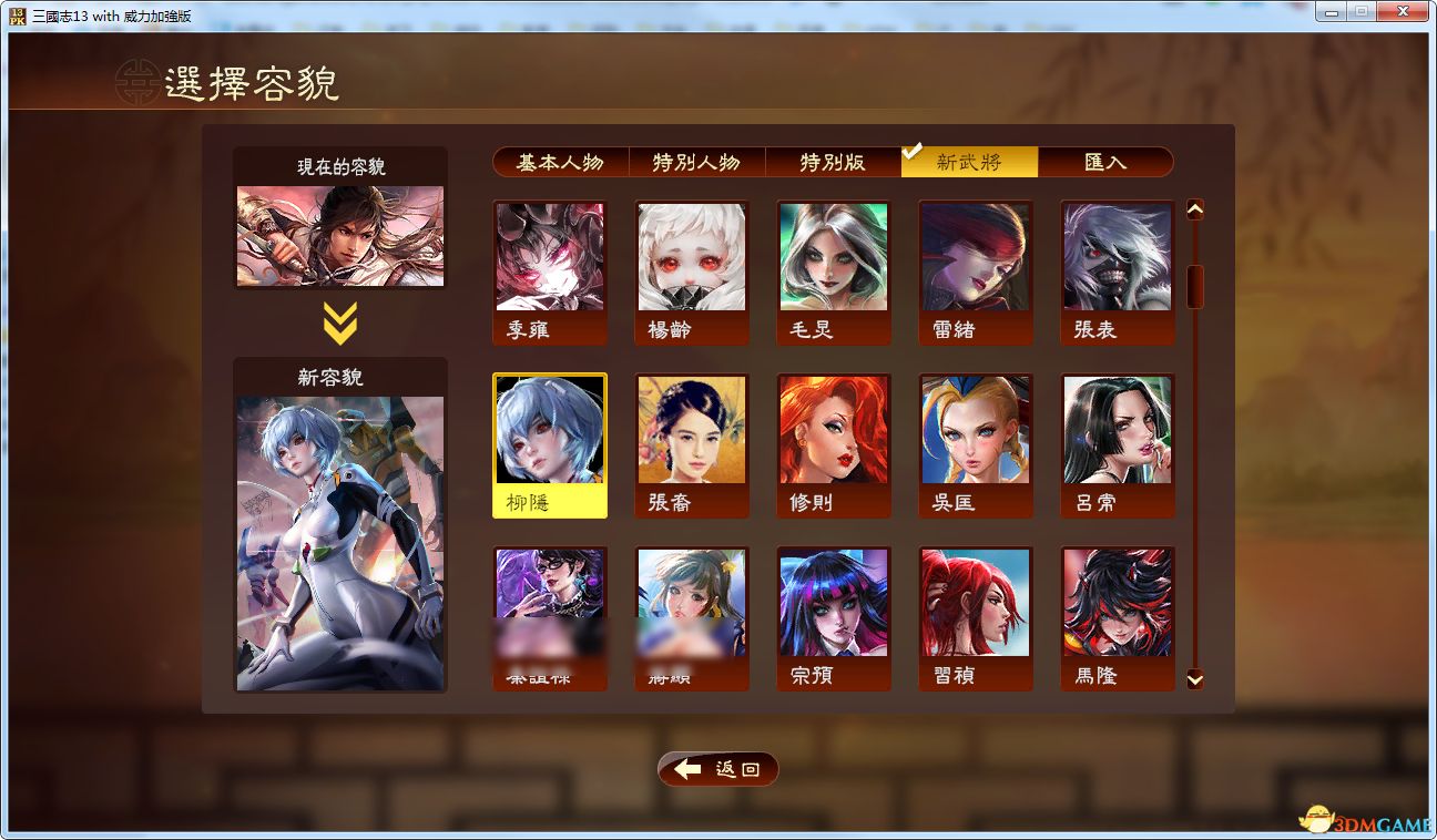 pk 数据包18——原版数据包08——长条图 186x90(左上角)扩充至256x128,可抠可不抠,新武将从00000018_01131.bmp开始到00000018_01467.bmp结束,共337张图,337个头像,实际上游戏中新武将头像只有133个.